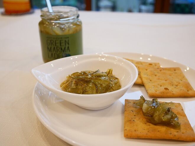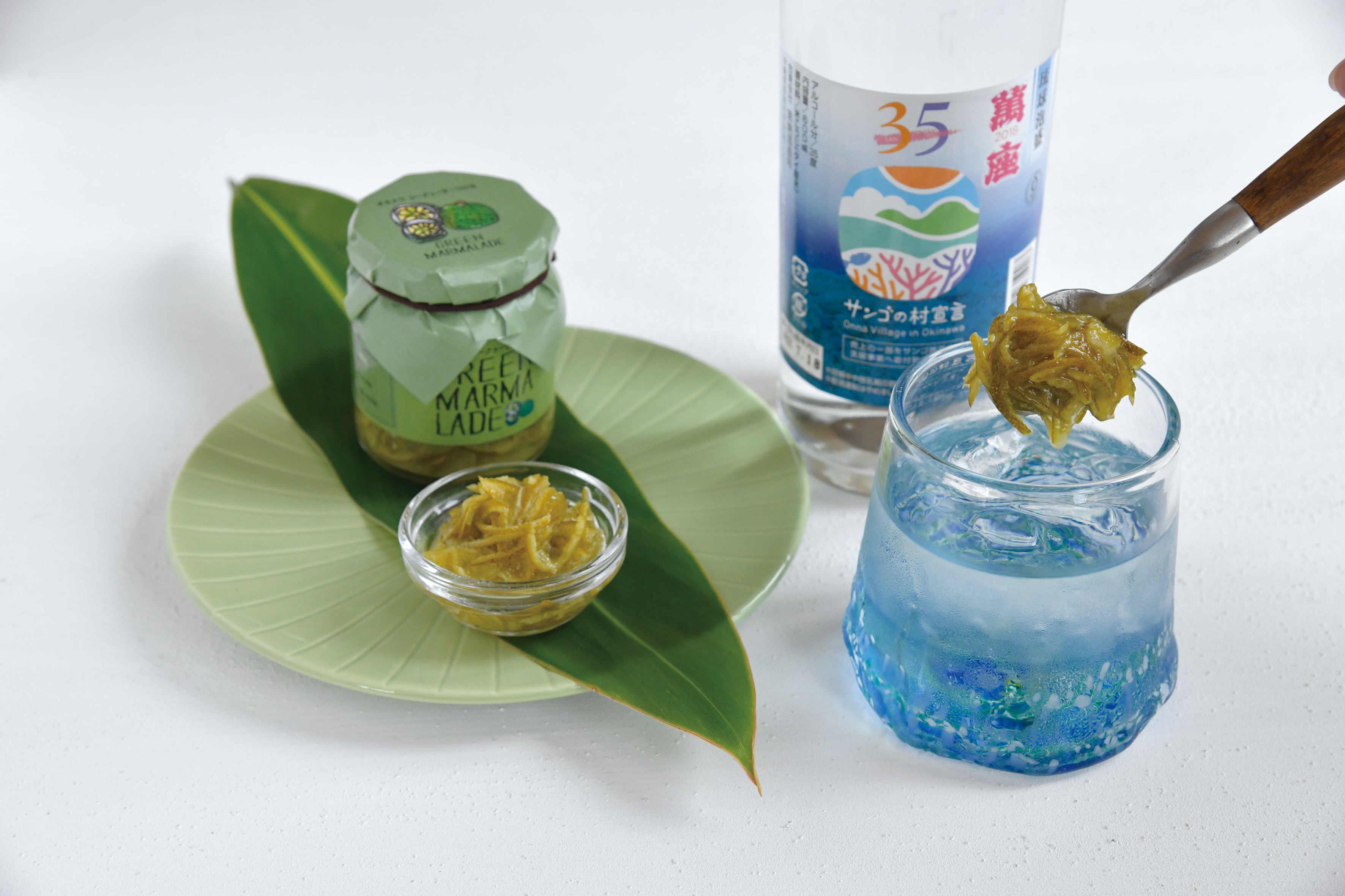 ①千切りにしたシークヮーサーの皮と果汁だけで作ったマーマレードで、ほんのりとした苦